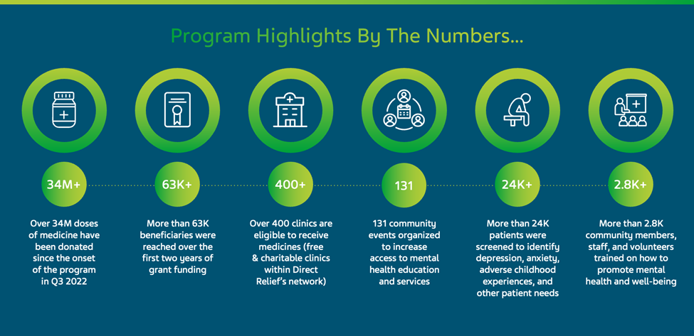 Launched in 2022, Community Routes provided an initial $2 million in grant funding over two years to support behavioral health services designed to meet the needs of the local underserved patient populations at select clinics in California, Florida, and New Jersey.